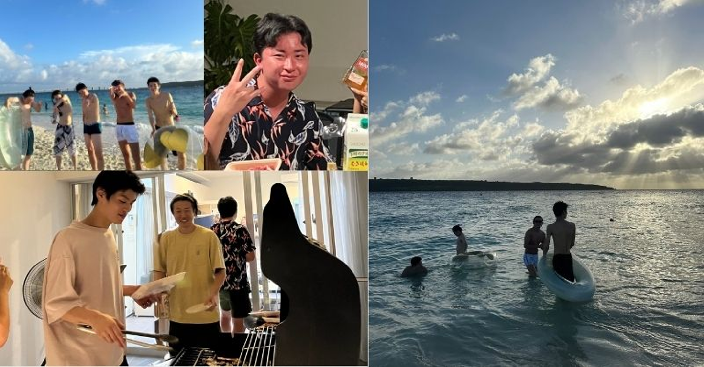 仕事の合間で海で遊んだり、バーベキューしたり。