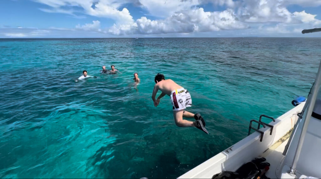 船で沖までいってシュノーケリング、素潜り三昧。みなさん帰りは疲労困憊のご様子でした。
